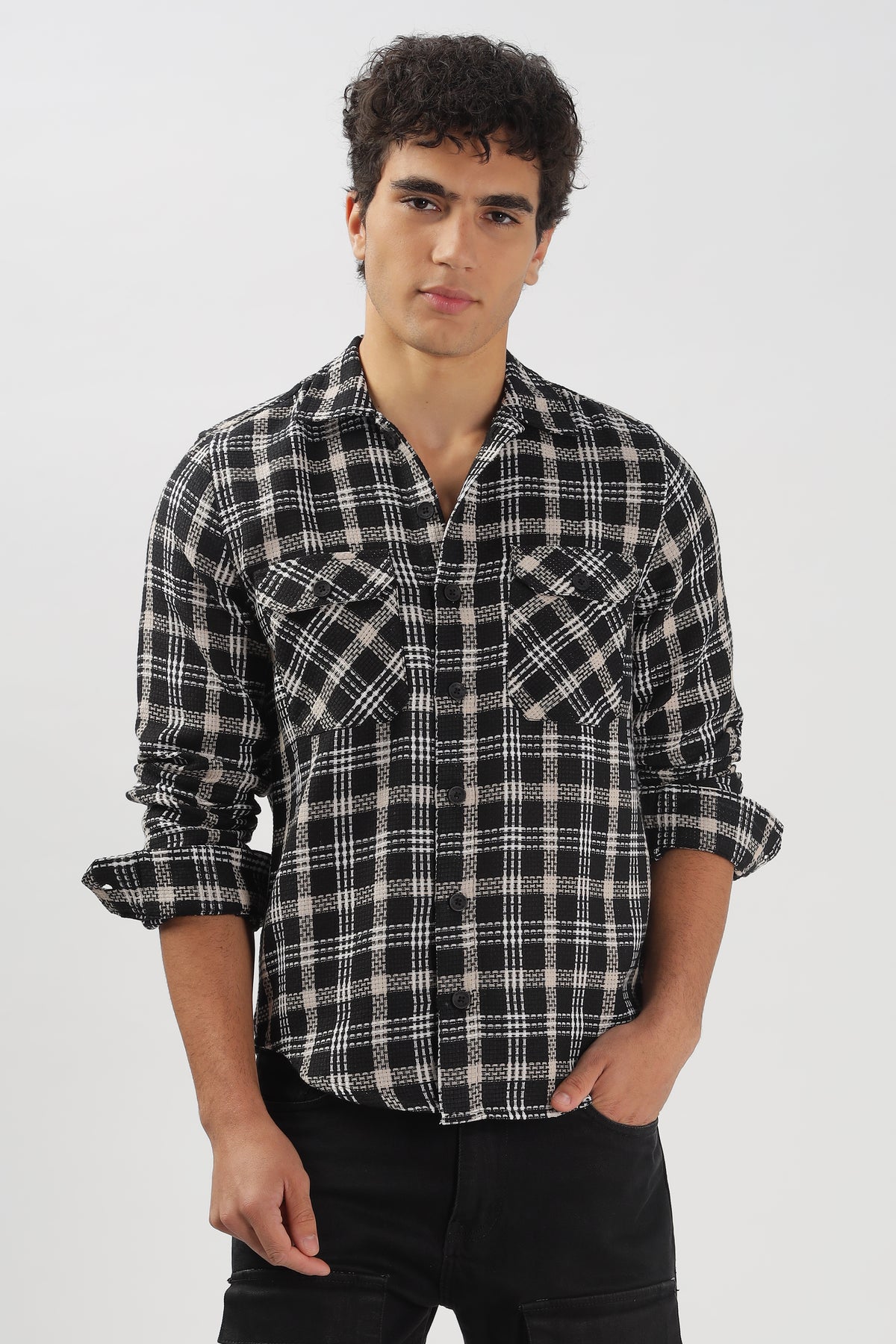 Featuring functional chest pockets with flaps and a sleek button-down design, this shacket isn't just about style—it's about utility too. Its breathable fabric and full sleeves make it a year-round staple for men who appreciate understated fashion.