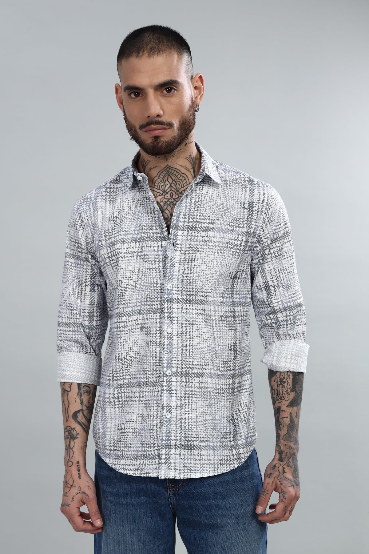 Refine your wardrobe with the Grey Abstract Shirt, a contemporary take on the timeless plaid design. The intricate grey and white pattern combines modern aesthetics with classic style, creating a versatile piece perfect for both casual and semi-formal occasions. Crafted from lightweight and breathable fabric, this shirt is designed to keep you comfortable and stylish all day long.