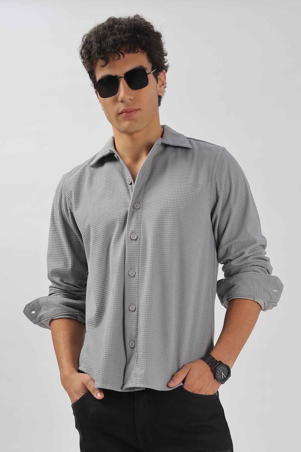 Elevate your casual wardrobe with the Grey Textured Waffle Long Sleeve Shirt, designed for the modern man who values both comfort and style. The unique waffle texture adds a contemporary touch to this versatile grey shirt, making it perfect for day-to-night transitions. Crafted with attention to detail, it offers a comfortable fit and a breathable fabric that keeps you looking sharp effortlessly.