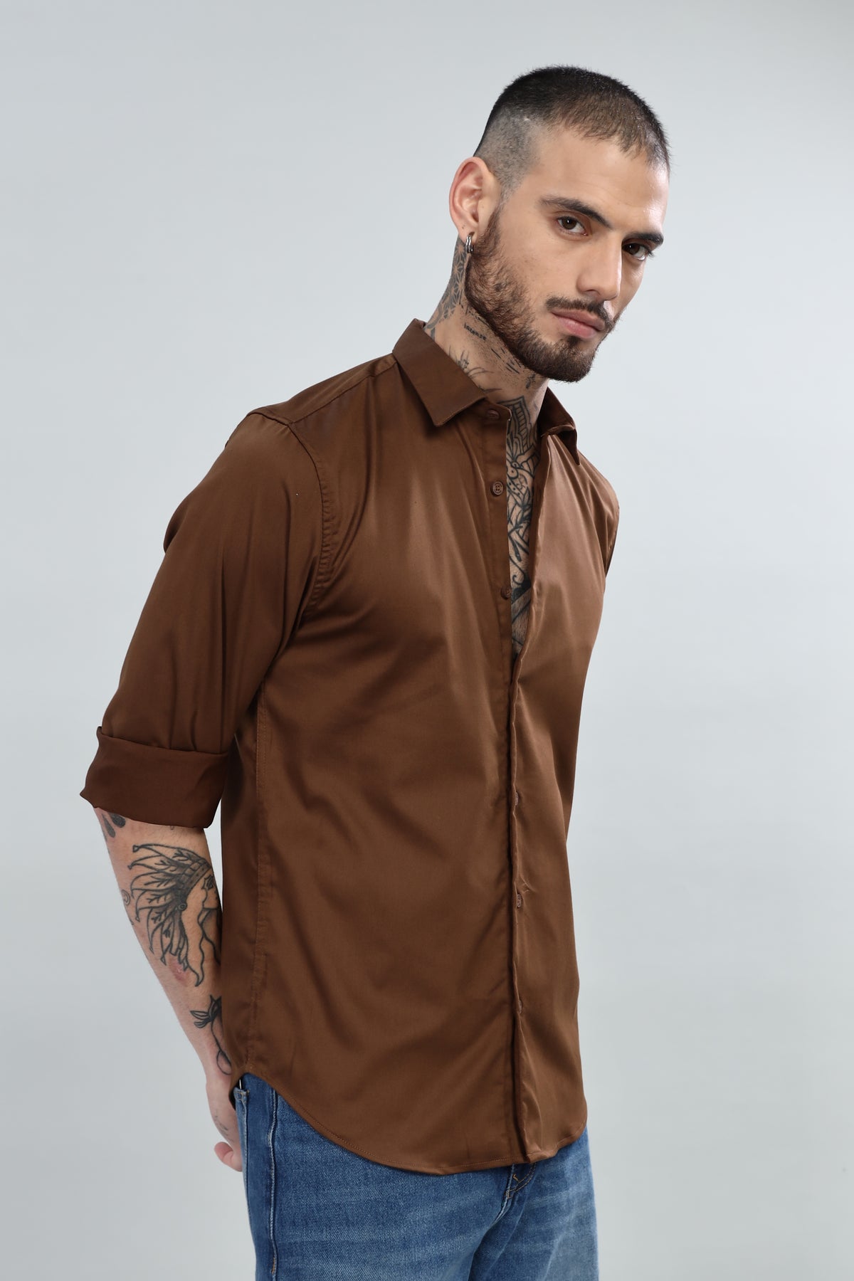A timeless wardrobe essential, the Chestnut Luxe Solid Shirt is your go-to choice for effortless elegance and versatility. Whether you're dressing up for a formal event or keeping it casual for an evening out, this shirt offers the perfect blend of style and comfort
