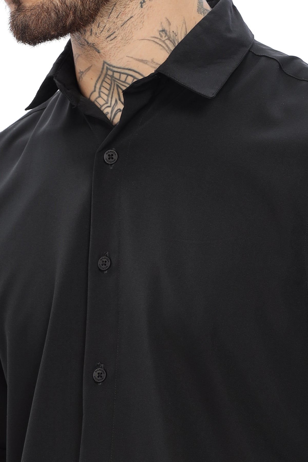 A timeless wardrobe essential, the Classic Black Solid Shirt is your go-to choice for effortless elegance and versatility. Whether you're dressing up for a formal event or keeping it casual for an evening out, this shirt offers the perfect blend of style and comfort