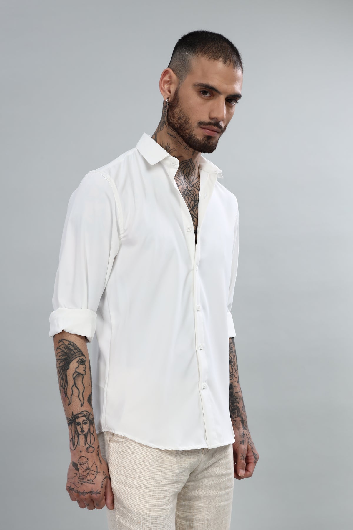 A timeless wardrobe essential, the White Luxe Solid Shirt is your go-to choice for effortless elegance and versatility. Whether you're dressing up for a formal event or keeping it casual for an evening out, this shirt offers the perfect blend of style and comfort