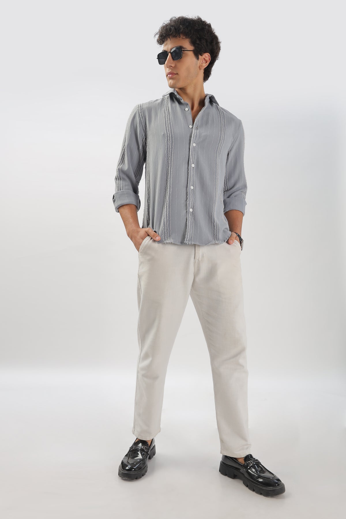 Elevate your wardrobe with the refined elegance of our Textured Pinstripe Gray Shirt. Crafted with intricate vertical pinstripe textures, this full-sleeve shirt offers a contemporary take on classic styling. Made from lightweight and breathable fabric, it ensures day-long comfort without compromising on style. Whether for a formal event or a casual outing, this shirt is a versatile addition to any modern man's collection.